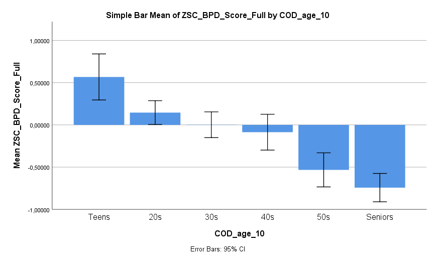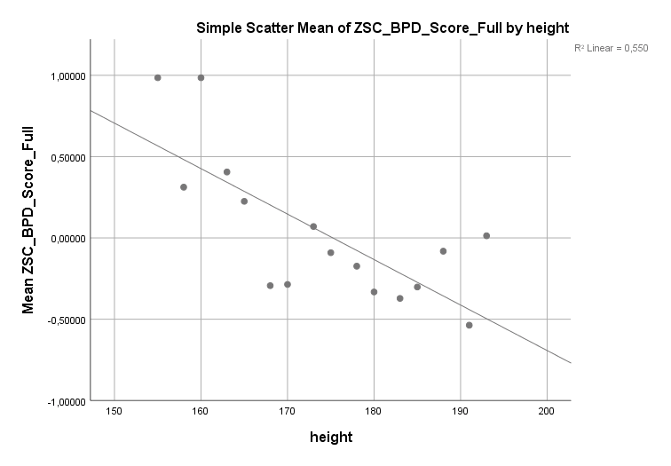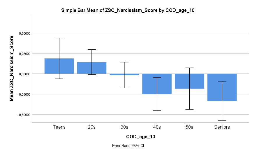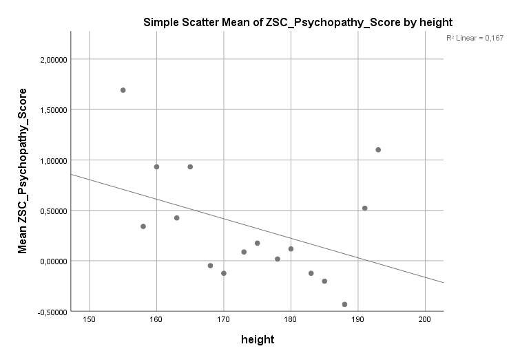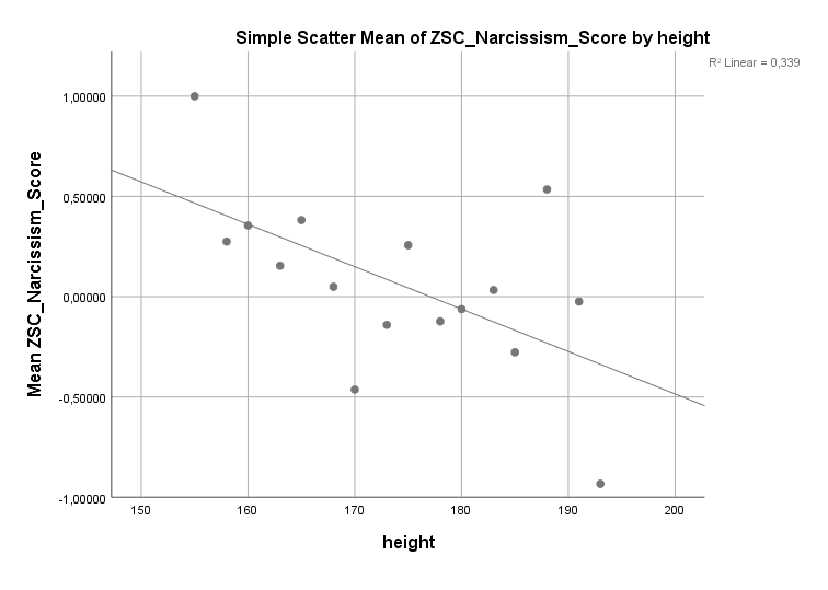 Was aber trotzdem eine direkte Aussagekraft behält sind die Z-Werte. Weiß man, dass ein Teilnehmer ein Resultat entsprechend z = 2 erhalten hat, dann weiß man dass dies einer ziemlich deutlichen Erhöhung von Narzissmus entspricht. Weiß man, dass ein ein Teilnehmer ein Resultat entsprechend z = 2 bei der Selbstbewusstseinskala erhalten hat, dann weiß man dass dies einer ziemlich deutlichen Erhöhung des Selbstbewusstseins entspricht. Und weiß man, dass ein Mensch eine Körpergröße entsprechend z = 2 hat, dann weiß man dass dies einer ziemlich deutlichen Erhöhung der Größe entspricht. Egal welche Skala verwendet wird, es lohnt sich in Z-Werten zu denken, weil hier Mittelwert und Schwankungsbreite schon sinnvoll verarbeitet sind.