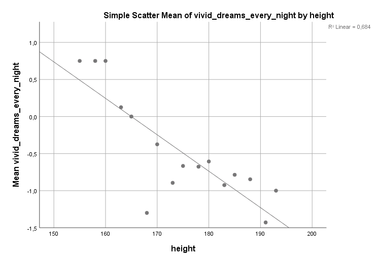 In diesem speziellen Fall wäre es tatsächlich sinnvoll, etwas weiterzurechnen, um die obigen Aussagen in bekannte Einheiten umzurechnen (z.B. Minuten Reduktion in der Einschlafdauer bei Reduktion es Konsums um 100 ml). Aber das ist nicht immer so. Man denke z.B. an den Zusammenhang zwischen emotionaler Stabilität und Gedächtnis. Oder Zustimmung zu Verschwörungstheorien und Angst vor Kontrollverlust. Hier gäbe es keine gängigen Einheiten zur Umrechnung. Der standardisierte Regressionskoeffizient Beta, und somit die Interpretation über Standardabweichungen, ist der Königsweg weil der Wert so schön skalenunabhängig ist. Und die Diskussion um Effektstärken somit auch einfach und einheitlich macht.