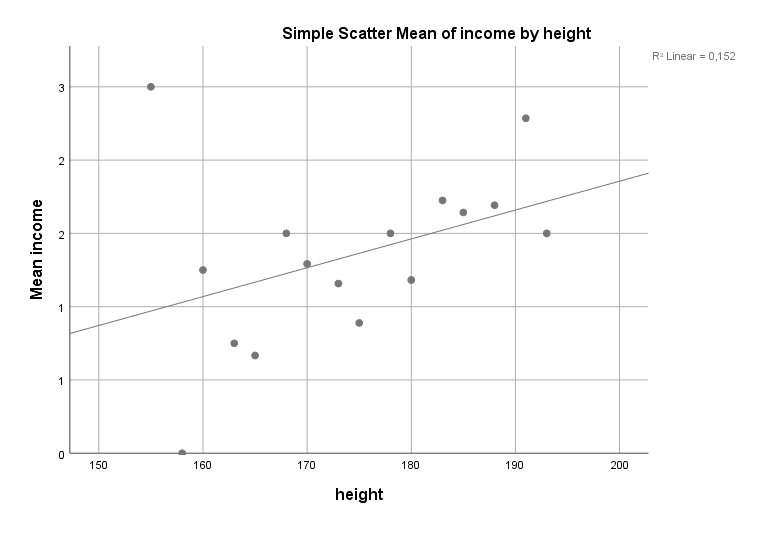 Man könnte hier noch einen Hinweis zum p-Wert anfügen. Das Statistik-Programm spuckt zu jedem Beta noch einen p-Wert raus. Dieser Wert sagt nichts über die Stärke eines Effekts. Er ist nur die Verlässigkeit des Resultats gegeben den Daten. Ein Wert p < 0,001 oder auch p < 0,01 sagt, dass man sich recht sicher sein darf, dass der Beta-Wert und alle Schlussfolgerungen daraus der Realität entsprechen. Es sind also genügend Daten vorhanden um der Regression “blind” glauben zu schenken. p < 0,05 ist schon etwas kritischer. Man kann den Wert Beta nehmen und seine Schlussfolgerungen ziehen, sollte sich der Sache aber nicht zu sicher sein. Eventuell interpretiert man hier eine zufällige Schwankung in den Daten als einen Effekt, der in der Realität gar nicht existiert. Und für p > 0,05 sollte man den Wert Beta verwerfen. Eventuell gibt es diesen Effekt. Aber man hat definitiv nicht genügend Daten, um sich dessen sicher zu sein.