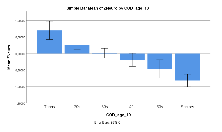 Diese Werte machen Sinn und lassen sich gut beurteilen ohne die jeweiligen Mittelwerte und Standardabweichungen der Big-Five-Skalen zu kennen. Eine Diskussion mit Mittelwerten und Schwankungsbreiten wäre deutlich aufwendiger gewesen und hätte den Blick auf das Zentrale wohl nur verwaschen. Die Z-Werte machen die Einordnung so klar wie möglich.